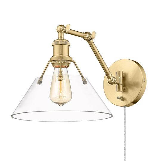 Yep by Golden Lighting Orwell 1-light Swing Arm Wall Lamp in Brushed Champagne Brass and Clear Glass