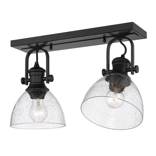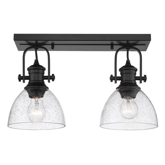 Yep by Golden Lighting Hines 2-light Semi-Flush Mount in Matte Black and Seeded Glass