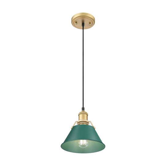 Yep by Golden Lighting Orwell 1-light 8in Pendant in Brushed Champagne Brass and Pine Green shade