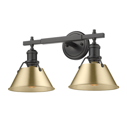 Yep by Golden Lighting Orwell 2-light Vanity in Matte Black and Brushed Champagne Brass shade