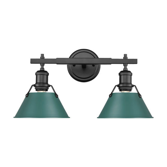 Yep by Golden Lighting Orwell 2-light Vanity in Matte Black and Pine Green shade