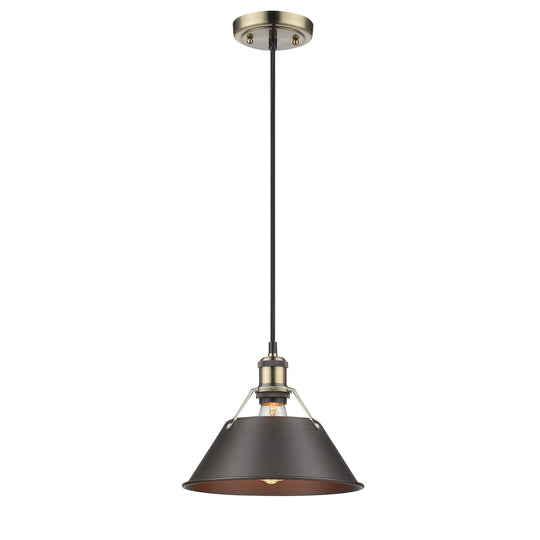 Yep by Golden Lighting Orwell 1-light 10in Pendant in Aged Brass and Rubbed Bronze shade