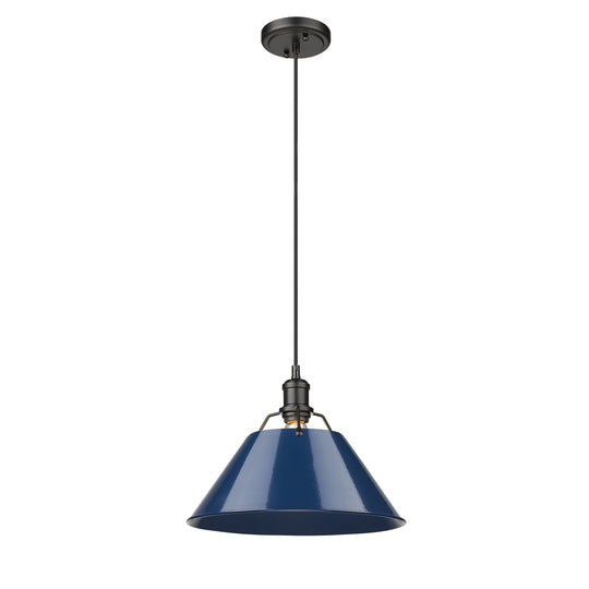 Yep by Golden Lighting Orwell 1-light 14in Pendant in Matte Black and Navy Blue shade