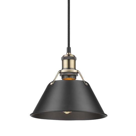 Yep by Golden Lighting Orwell 1-light 8in Pendant in Aged Brass and Matte Black shade