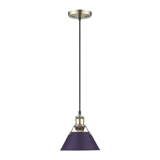 Yep by Golden Lighting Orwell 1-light 8in Pendant in Aged Brass and Exotic Purple shade