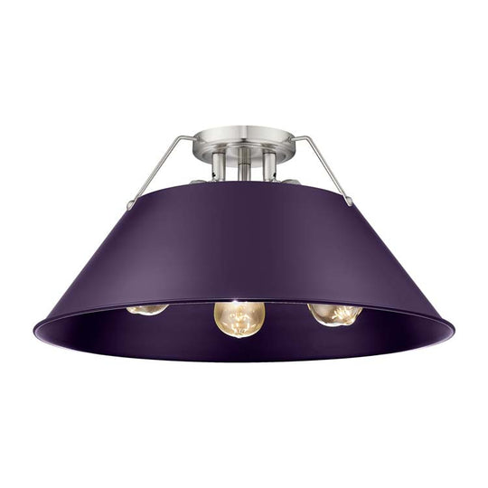Yep by Golden Lighting Orwell 3-light Flush Mount in Pewter and Exotic Purple shade