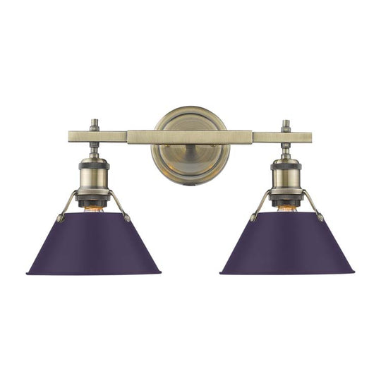Yep by Golden Lighting Orwell 2-light Vanity in Aged Brass and Exotic Purple shade