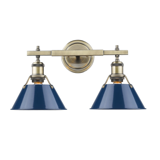 Yep by Golden Lighting Orwell 2-light Vanity in Aged Brass and Navy Blue shade