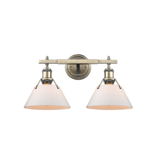 Yep by Golden Lighting Orwell 2-light Vanity in Aged Brass and Opal Glass