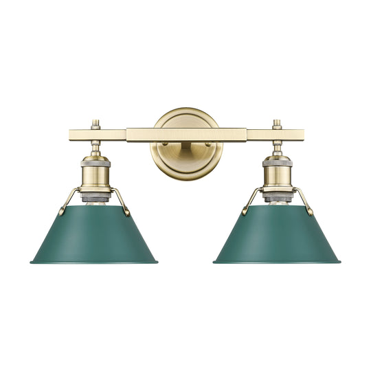 Yep by Golden Lighting Orwell 2-light Vanity in Aged Brass and Pine Green shade