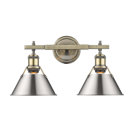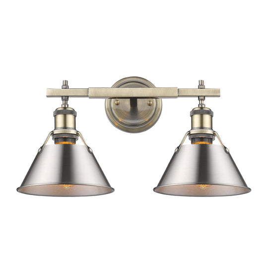 Yep by Golden Lighting Orwell 2-light Vanity in Aged Brass and Pewter shade