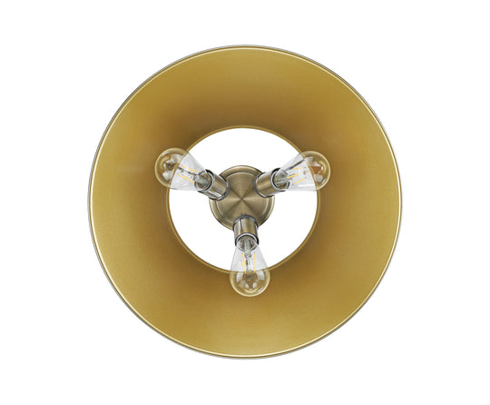 Yep by Golden Lighting Orwell 3-light Flush Mount in Aged Brass and Brushed Champagne Brass shade