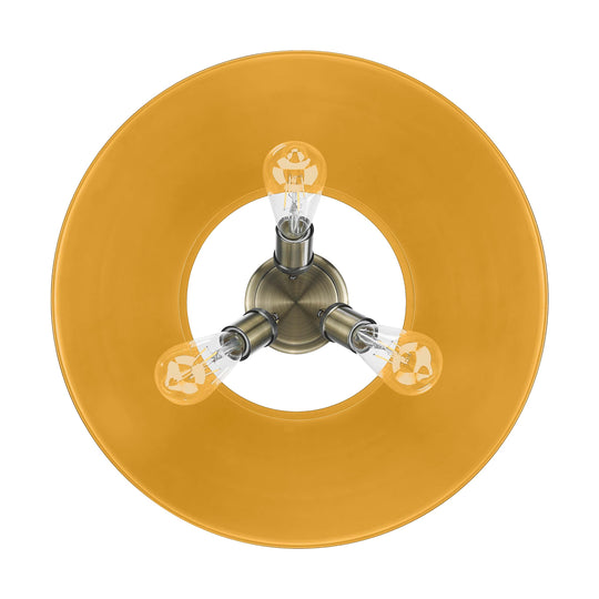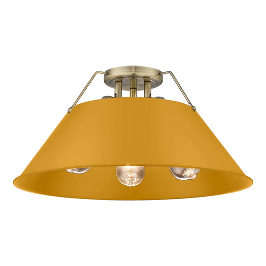 Yep by Golden Lighting Orwell 3-light Flush Mount in Aged Brass and Auric Yellow shade