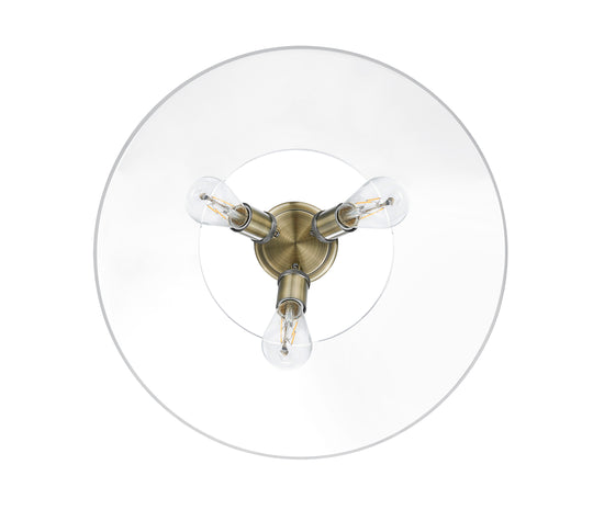 Yep by Golden Lighting Orwell 3-light Flush Mount in Aged Brass and Clear Glass