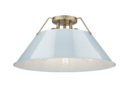 The Yep by Golden Lighting Orwell 3-light Flush Mount blends industrial style with Aged Brass and a dusky blue metal shade, delivering a tranquil ambiance ideal for any room. Bring industrial elegance into your home with...Regular price $263.99 -