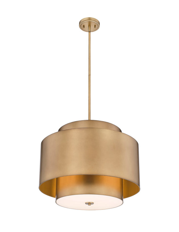 Regular price $424.00A layered, double drum design creates a bold, designer look for the impressive Harlech collection one-light pendant. Beautiful over an entry or in series over a kitchen island, the pendant boasts a warm rubbed brass inner... -