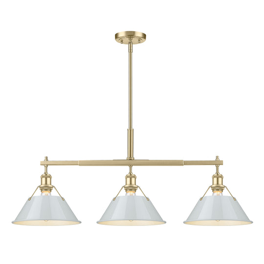 Yep by Golden Lighting Orwell 3-light Island Light in Brushed Champagne Brass and Dusky Blue shade