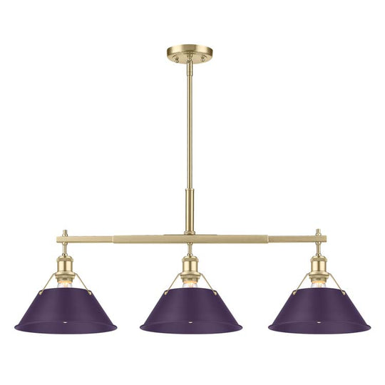 Yep by Golden Lighting Orwell 3-light Island Light in Brushed Champagne Brass and Exotic Purple shade
