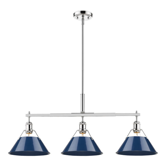 Yep by Golden Lighting Orwell 3-light Island Light in Chrome and Navy Blue shade