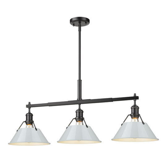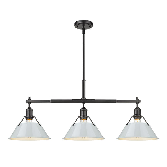 Yep by Golden Lighting Orwell 3-light Island Light in Matte Black and Dusky Blue shade