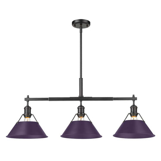 Yep by Golden Lighting Orwell 3-light Island Light in Matte Black and Exotic Purple shade