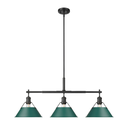 Yep by Golden Lighting Orwell 3-light Island Light in Matte Black and Pine Green shade