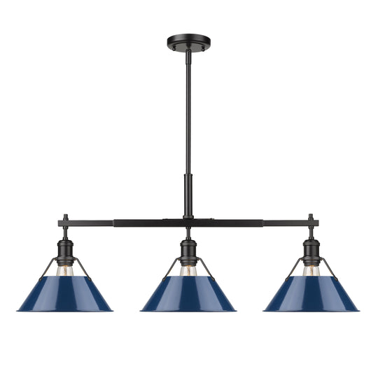 Yep by Golden Lighting Orwell 3-light Island Light in Matte Black and Navy Blue shade
