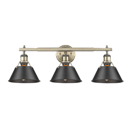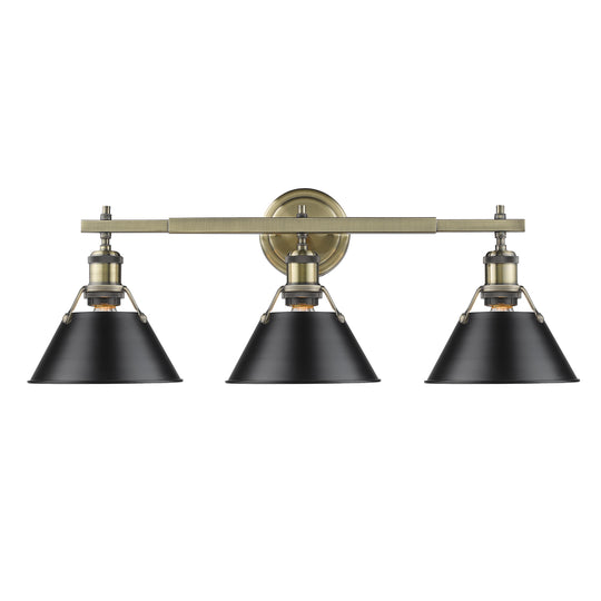 Yep by Golden Lighting Orwell 3-light Vanity in Aged Brass and Matte Black shade