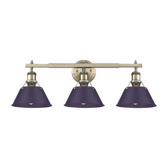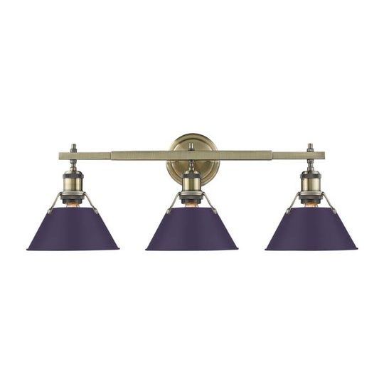 Yep by Golden Lighting Orwell 3-light Vanity in Aged Brass and Exotic Purple shade