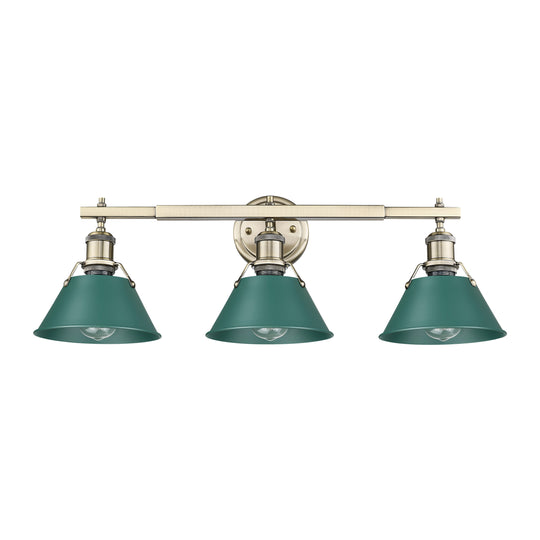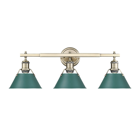 Yep by Golden Lighting Orwell 3-light Vanity in Aged Brass and Pine Green shade