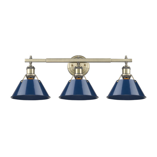 Yep by Golden Lighting Orwell 3-light Vanity in Aged Brass and Navy Blue shade