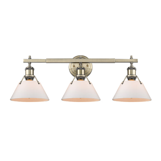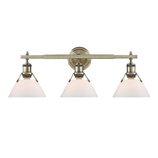 Yep by Golden Lighting Orwell 3-light Vanity in Aged Brass and Opal Glass