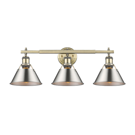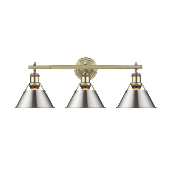 Yep by Golden Lighting Orwell 3-light Vanity in Aged Brass and Pewter shade