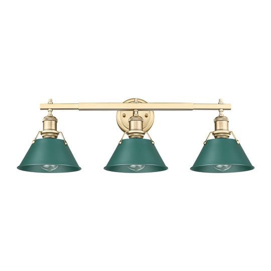 Yep by Golden Lighting Orwell 3-light Vanity in Brushed Champagne Brass and Pine Green shade