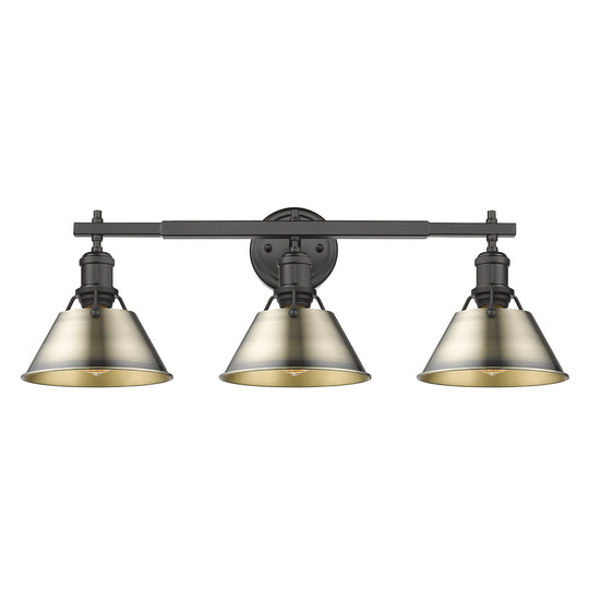 Yep by Golden Lighting Orwell 3-light Vanity in Matte Black and Aged Brass shade
