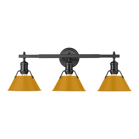 Yep by Golden Lighting Orwell 3-light Vanity in Matte Black and Auric Yellow shade