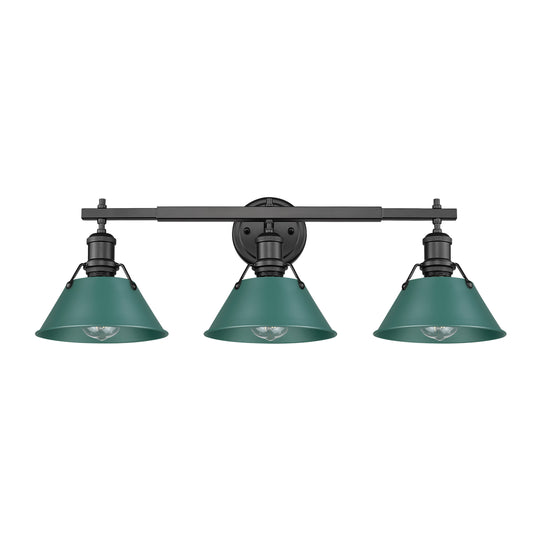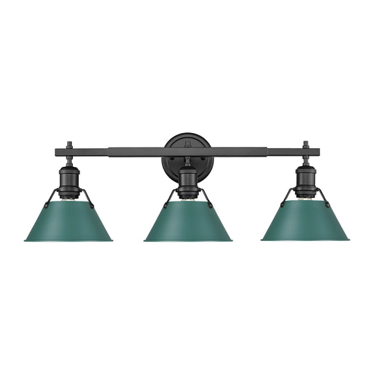 Yep by Golden Lighting Orwell 3-light Vanity in Matte Black and Pine Green shade