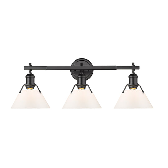 Yep by Golden Lighting Orwell 3-light Vanity in Matte Black and Opal Glass