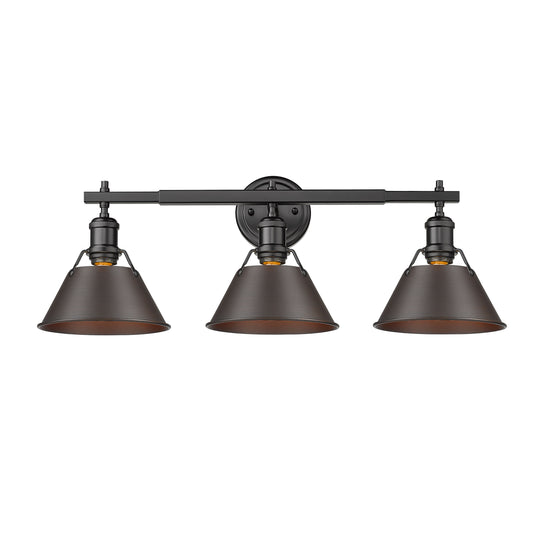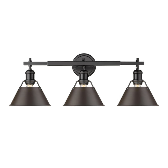 Yep by Golden Lighting Orwell 3-light Vanity in Matte Black and Rubbed Bronze shade