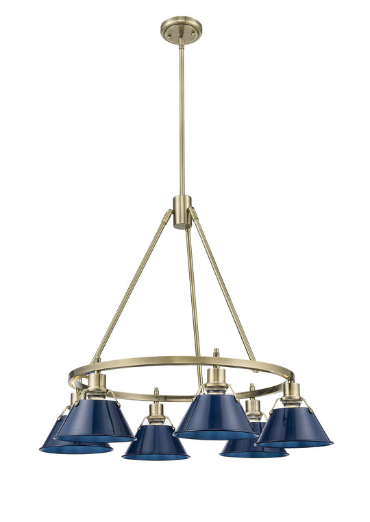 Yep by Golden Lighting Orwell 6-light Chandelier in Aged Brass and Navy Blue shade