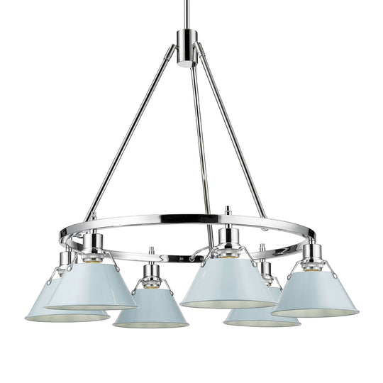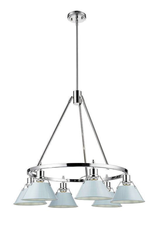 Yep by Golden Lighting Orwell 6-light Chandelier in Chrome and Dusky Blue shade