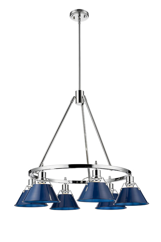 Yep by Golden Lighting Orwell 6-light Chandelier in Chrome and Navy Blue shade