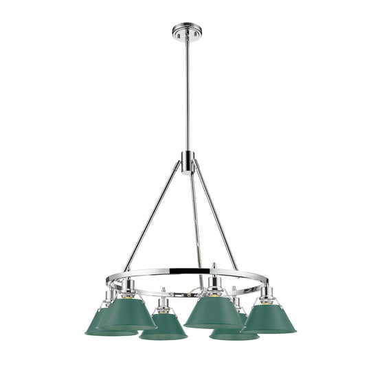 Yep by Golden Lighting Orwell 6-light Chandelier in Chrome and Pine Green shade