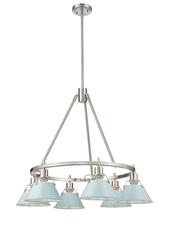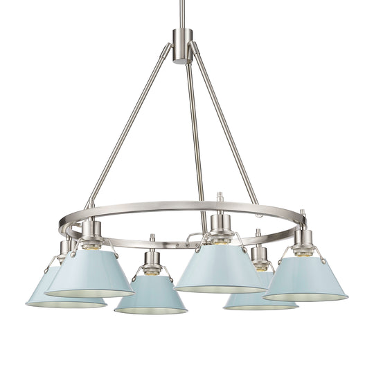 Yep by Golden Lighting Orwell 6-light Chandelier in Pewter and Dusky Blue shade
