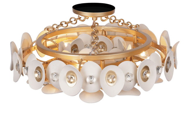Niu Three Light Semi Flush Mount in Coconut Shell Gold / Coconut Shell White