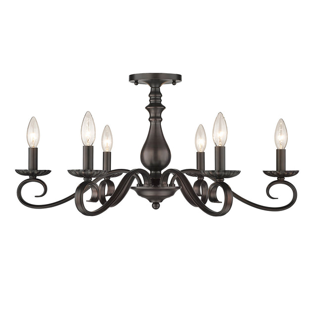Larrick Six Light Semi-Flush Mount in Rubbed Bronze