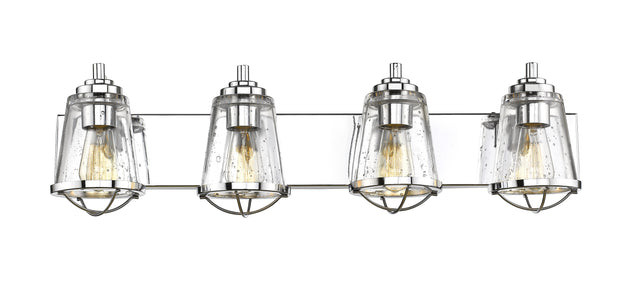 Regular price $320.004 Light Vanity --- Borrowing from a beloved nautical motif, the uplifting style of this four-light vanity fixture becomes an integral part of a master or guest bath design scheme. Luscious, shiny chrome metal provides a... -