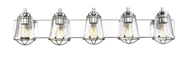 Regular price $398.005 Light Vanity --- At the center of a contemporary, stylish bath space lies this personality-rich five-light vanity fixture. Indulge in a charming maritime theme that marries sleek chrome finish steel and seedy glass shades, with... -