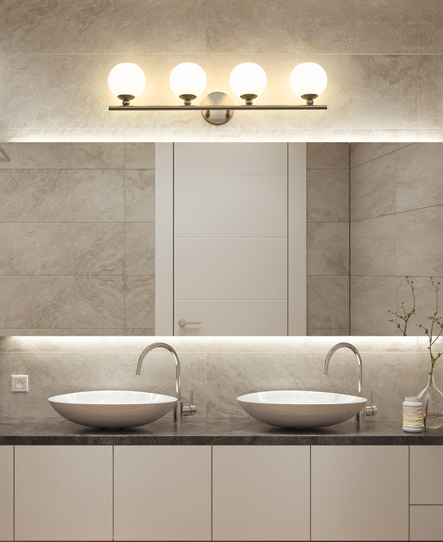 Regular price $264.004 Light Vanity The classic globes that distinguish the Neoma series lend an essence of updated Modernism to any bath or powder room. Available in 1- to 5-light versions and offered in a choice of Brushed... -