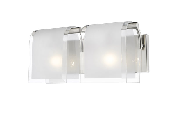 Regular price $202.002 Light Vanity --- Bent frosted glass shades are hung over brushed nickel hardware on this 2 light vanity to create a modern touch for any room. Specifications Style Number 169-2V-BN Install PDFs 169-2V-BN.pdf Actual Weight... -
